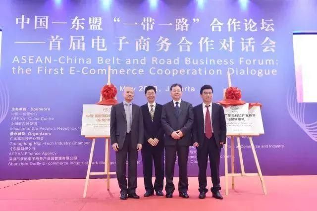 “廣東高科技產(chǎn)業(yè)商會印尼聯(lián)絡(luò)處”及中國·福田國際電子商務(wù)產(chǎn)業(yè)園(東盟)運營中心5月16在中國—東盟“一帶一路”合作論壇—首屆電子商務(wù)合作對話會上揭牌,中國—東盟中心秘書長楊秀萍、中國駐東盟大使黃溪連、東盟副秘書長阿拉丁、東盟常駐代表委員會輪值主席、新加坡常駐東盟代表陳漢成及東盟各國常駐代表和東盟秘書處高級官員,來自中國和東盟成員國的企業(yè)家、專家學(xué)者及媒體代表共約600人見證揭牌。