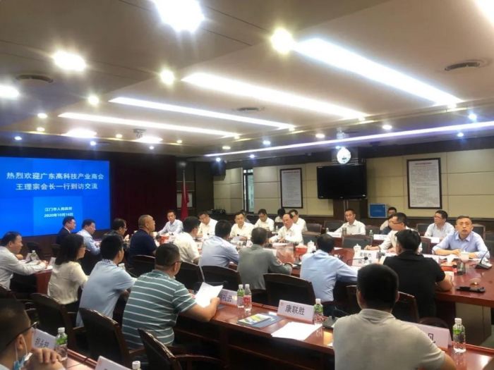 10月16日,為了推動(dòng)我會(huì)科技、項(xiàng)目、資金、產(chǎn)業(yè)的內(nèi)循環(huán),王理宗會(huì)長率領(lǐng)廣東高科技產(chǎn)業(yè)商會(huì)考察團(tuán)一行到江門市參觀考察,受到了市委書記林應(yīng)武等領(lǐng)導(dǎo)的熱情會(huì)見,在市人民政府會(huì)議室舉行座談會(huì),雙方就多個(gè)領(lǐng)域的合作進(jìn)行了充分溝通,現(xiàn)場氣氛熱烈。