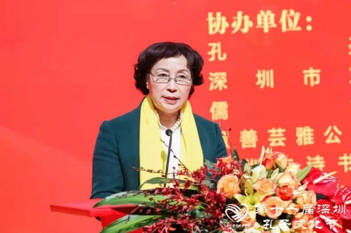 孔子后裔宗親會(huì)代表,原深圳市委統(tǒng)戰(zhàn)部副部長(zhǎng)、僑聯(lián)主席、僑媛會(huì)會(huì)長(zhǎng)、孔愛(ài)玲女士也表達(dá)了作為孔子后人,肩上所承擔(dān)的文化傳承的責(zé)任與使命。
