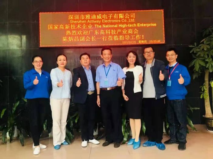 2月25日上午,廣東高科技產業商會陳炳昌副會長、徐瑞鴻秘書長一行走訪了商會的常務理事單位、全球排名前三的汽車功放生產廠家——深圳市雅迪威電子有限公司,公司董事長賴國燕熱情接待了商會一行。